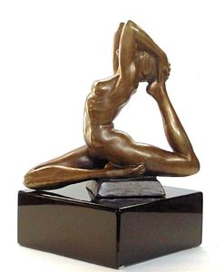 Three Peaks is a dynamic presentation of the female figure borrowing from a Yoga position. Kevin finds Yoga an inspiring source of compositional possibilities in artfully presenting the human body. This piece measures 5" high x 5" wide x 3" deep and is produced in an edition of 50.